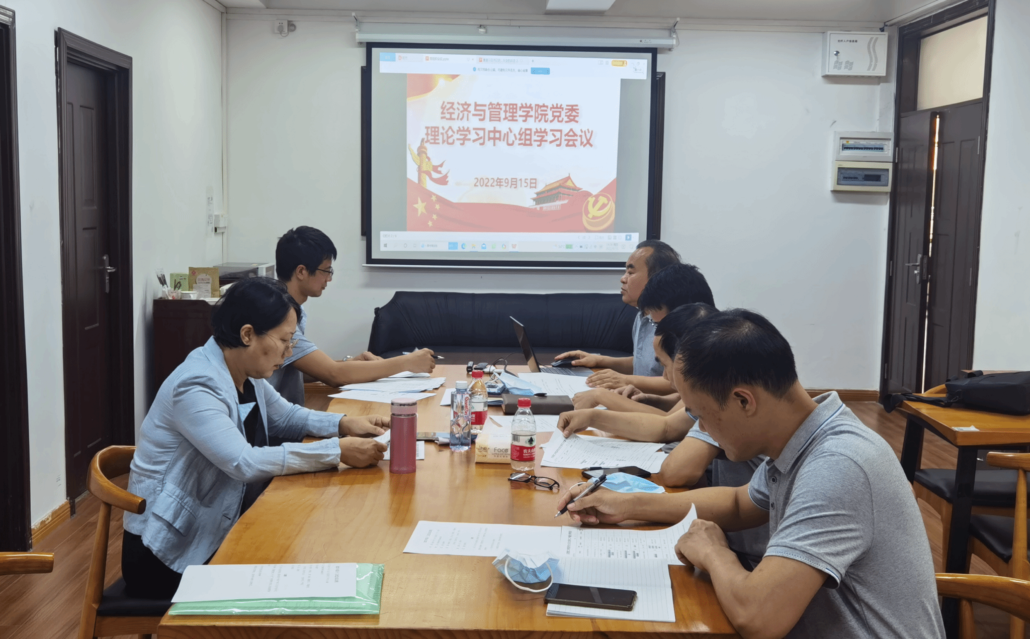 9月15日下午,经济与管理学院党委理论学习中心组于莞城校区4418会议室召开专题学习会,深入学习贯彻《习近平谈治国理政》第四卷。经济与管理学院党委书记杨继学主持会议,院长刘继云,副书记黄湘,副院长刘川、黎伟等成员参与了学习交流研讨。