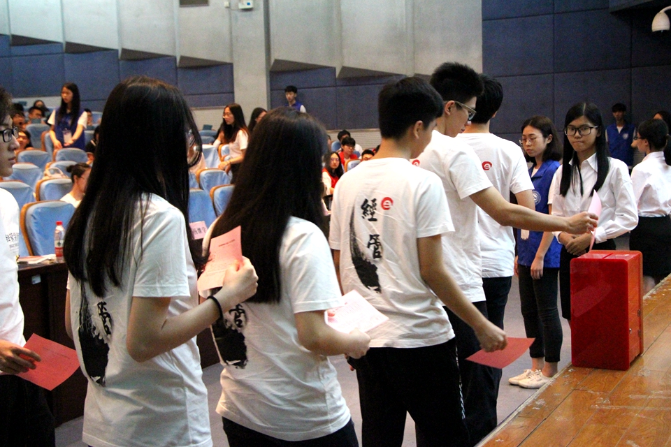在大会播放了2017-2018学年度经济与管理学院yl9193永利集团的回顾视频后,学生会主席李梓翊作第二届经管团学的工作汇报,生活部部长邓梓健作第二届经管团学的财务汇报。接着,主持人宣读经管团学换届大会选举办法,邀请参与第三届经管团学委员选举的13位候选人依次上台演讲。大会随后进入投票环节,由现场的学生代表依次上台投票,监票组的工作人员当场监票、验票。在计票过程中,辅导员邓毅青发表征兵动员讲话,希望同学们踊跃参军。党总支副书记劳丹对本次大会作总结,鼓励同学们踊跃参军,并对委员候选人的演讲作详细点评。最后,总监票人宣布各委员候选人获得票数情况。