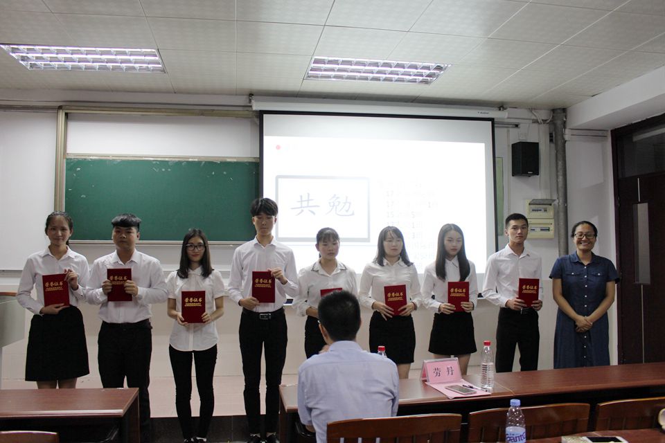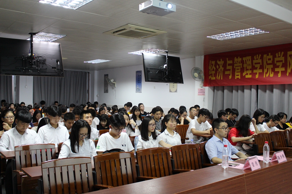 6月20日晚,为加强学风建设工作,经济与管理学院2017-2018学年度学风建设表彰大会暨考试动员大会于莞城校区1409课室顺利召开。出席本次活动的有经济与管理学院党总支副书记劳丹,辅导员陈少典以及2015-2017级各班班委。
