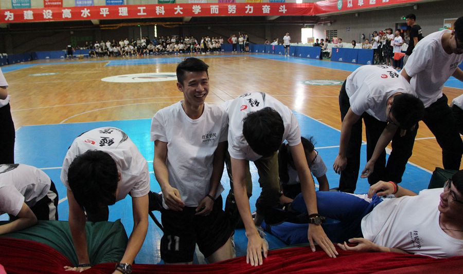 开幕式后,30人31足竞跑比赛在体育馆揭开帷幕。yl88858永利集团学生积极参与其中,30人手挽手站成一排,喊着整齐划一的口号,迈着协调一致的步伐,齐心协力向终点冲去。经管学子向全校展现了团结互助的能力和积极奋进的风采,最终夺得了30人31足竞跑比赛的亚军!