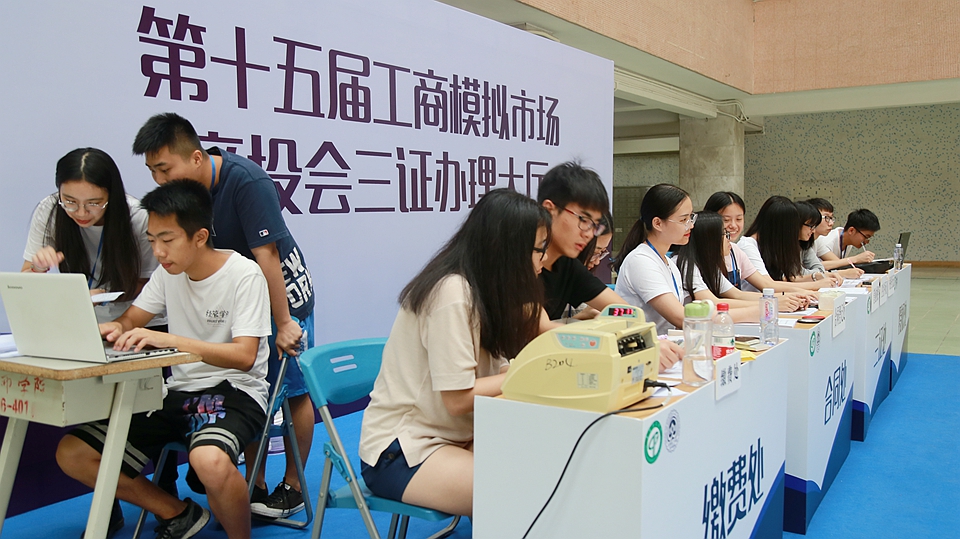 为确保经济与管理学院创新创业实训项目——第十五届工商模拟市场的顺利进行,5月10日下午,经济与管理学院于莞城校区小剧场组织开展了第十五届工商模拟市场竞投会,并于四号楼大厅进行三证办理及合同签署。本次活动主要面对参与工模报名摆摊且企业计划书审核过关的团队开展。