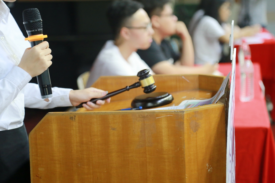 本次工模竞投会与三证办理仿真模拟公司注册,让学生体验成立公司的具体流程,由工模组委会公正、公开与摊主签订各项市场协议、合同,并监督、规范其交易行为,以提升工商模拟市场的质量和档次。摊主们需带齐企业名称预先核准通知书、摊主身份证和学生证,方可取到竞投牌号参与竞投。经济与管理学院第一届团总支、学生会常务副书记徐振铎、粤台产业科技学院第三届团总支、学生会主席吕松津受邀担任本次竞投会的公证人。在拍卖官的主持下,37个学生摊位分为熟食区、食品区和综合区进行竞投,并敲定最终拍卖价格。