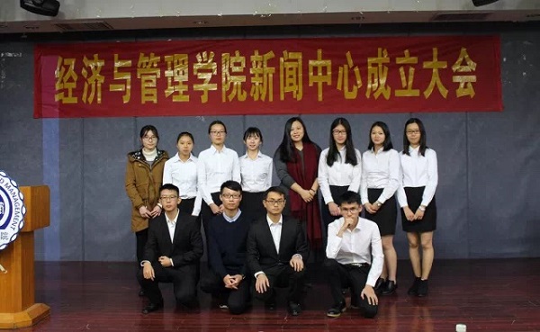 2017年12月20日晚,于莞城校区小剧场举行经济与管理学院新闻中心第一届成立大会,经管党总支副书记劳丹、辅导员团总支书记陈少典、辅导员学生党建办公室指导老师叶惠如、辅导员新闻中心指导老师张颖君、团总支学生会委员团、新闻网络部部长及干事、宣传部部长及干事、党建办网宣部部长及干事等出席本次大会。