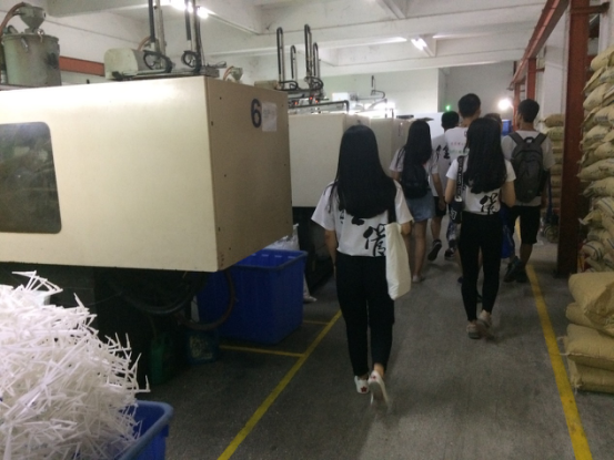 调研伊始,队员与校友进行了座谈。林国威校友向在场同学介绍其自主创业历程、公司发展规模、部门分工、销售渠道、应对经济转型升级的举措等情况。其后,企业调研队一行在校友的带领下参观其工厂,在生产车间,包装车间校友还就生产的一些过程给队员们进行了讲解。