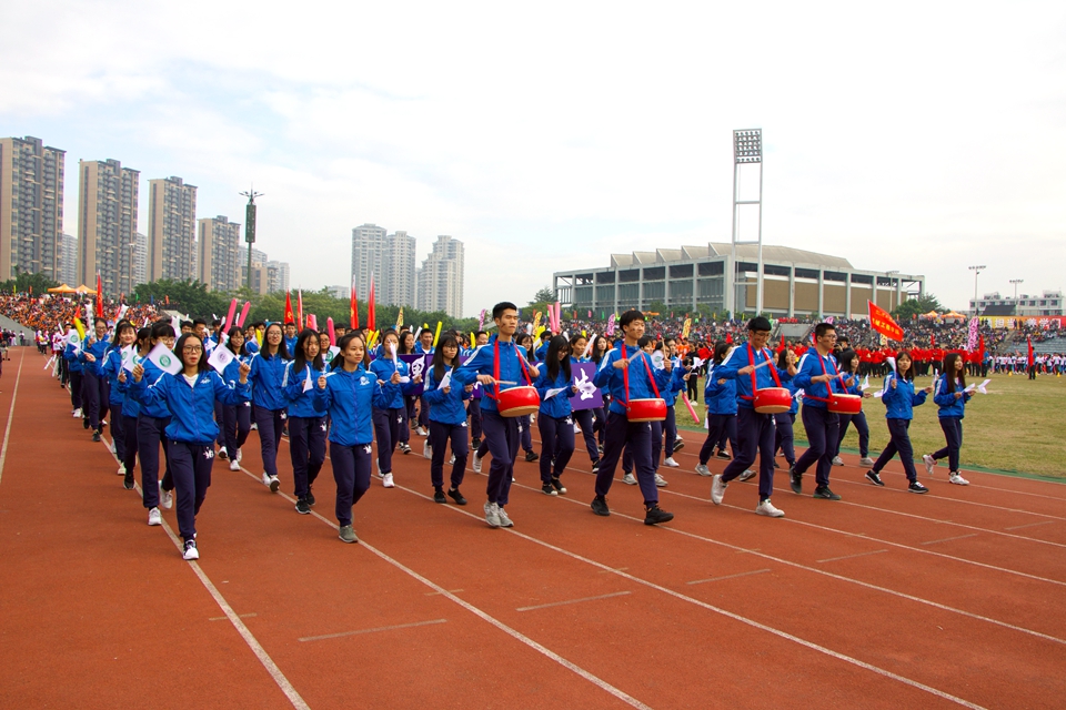 11月28至29日,我校于松山湖校区真草运动场举行2017年体育运动会。开幕式在一曲《潮》的伴随下拉开了序幕,接着由我校各二级学院师生代表及校友代表组成的十八支方阵队伍步入会场。经济与管理学院的方阵迈着整齐划一的步伐,高喊“风口浪尖,我们争先;经济管理,最棒是你”的口号,并举着“经世济民生,管才理天下”的牌子闪亮登场,向全校师生展现了yl88858永利集团积极奋进的英姿。随后,校党委副书记吕琦元致辞。在运动员代表和裁判员代表分别宣誓后,校运会组委会主任、党委书记成洪波宣布运动会正式开幕。