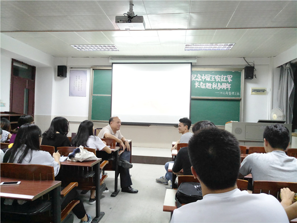 2016年10月26日晚,经济与管理学院14级工商管理1班在莞城校区教室开展了“纪念中国工农红军长征胜利80周年”主题班会。