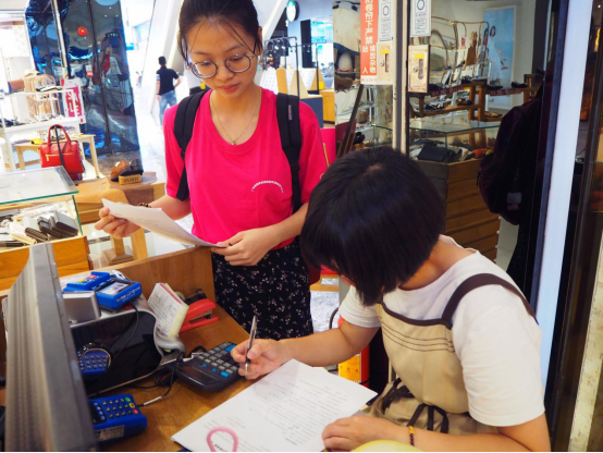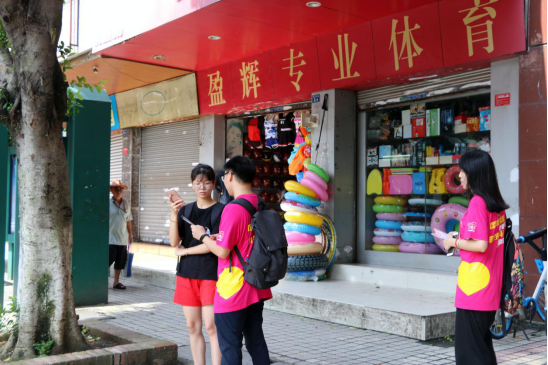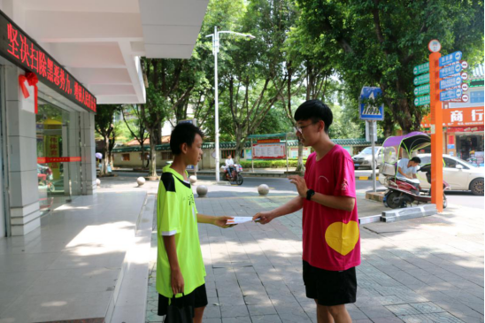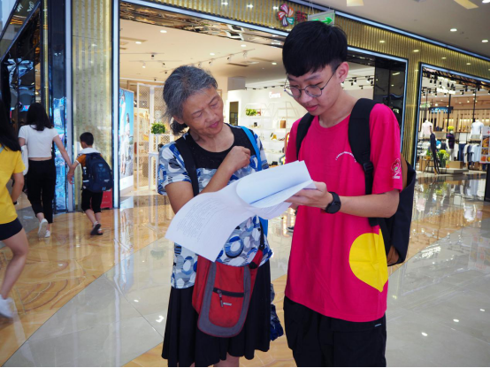 除了在人流量大的地方发放问卷,调研队的成员们还在韶关的大街小巷为当地的人们讲解关于国家助学政策的详细条文,甚至吸引了好多在读学生。