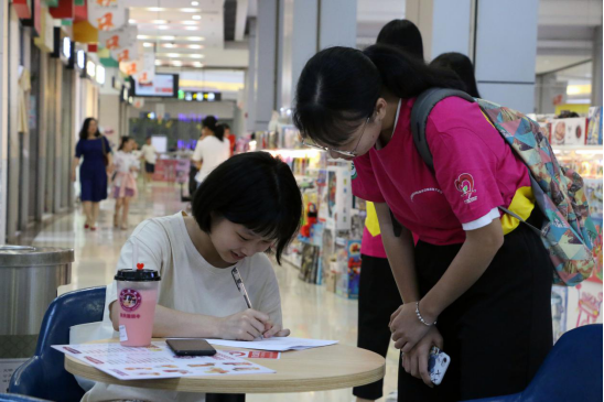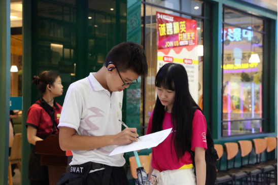 我们走遍韶关市区的每一个角落,发放问卷,宣传着这次的助学贷款理念。成员多次到当地人流量较大的地方以流动讲解形式向群众讲解国家资助政策。过往人群纷纷停下脚步,或认真看宣传海报或向宣传人员询问。宣传人员以最简单明了的语言向人们阐述“什么是生源地助学贷款”“如何申请助学贷款”和“如何申请助学金”等相关资助政策问题。
