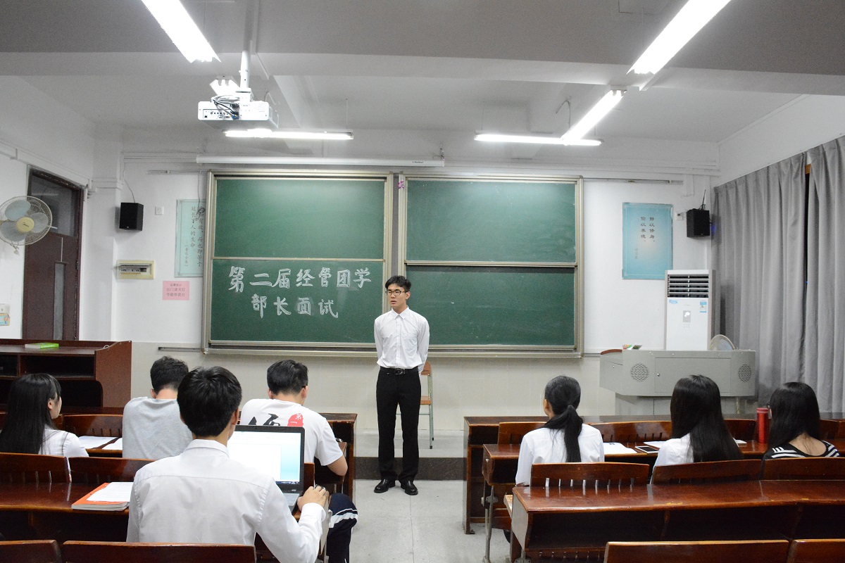 为选拔具有领导能力与管理能力的人才建设第二届经管团学,6月13日晚,团学17大部门部长面试于莞城校区5号楼各课室开展。