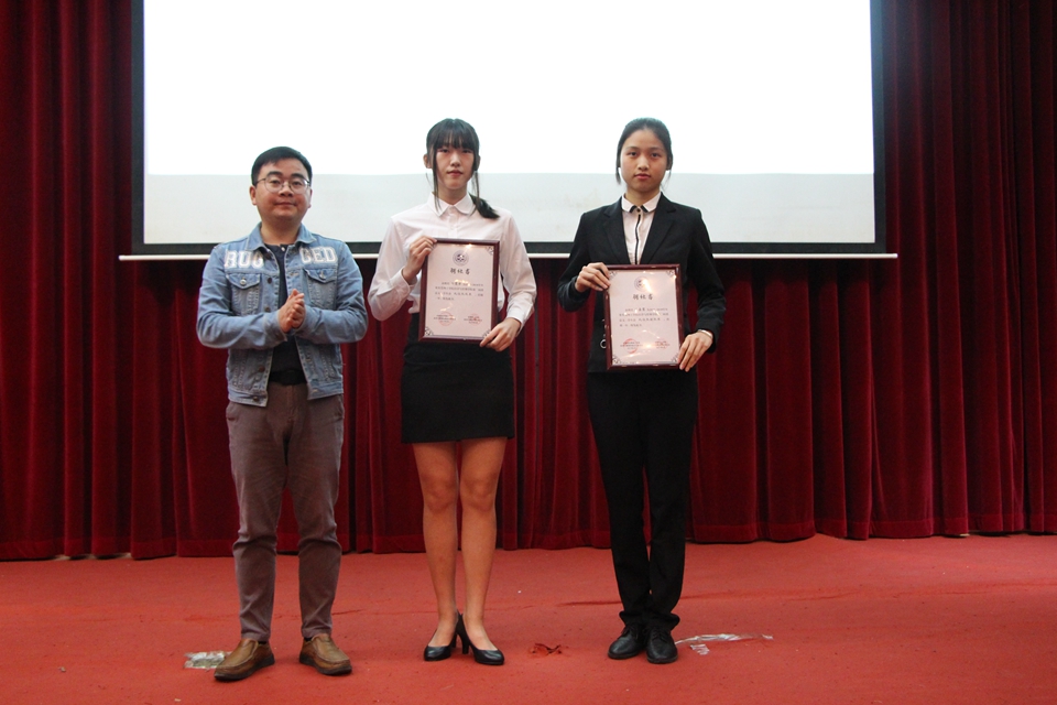 大会伊始,团总支书记熊涛上台发言,表达了对团学的关怀与团学工作的支持。随后,礼仪队队长叶慧君,副队长林嘉慧接受聘任仪式。紧接着,团总支常务副书记丁懋为上学期各部门的优秀干事表彰。因故缺席的学生会主席李梓翊以视频的方式对即将要开展的工商模拟市场、大学生网上模拟证券投资竞赛等一系列活动进行动员。随即,现场播放了动员视频。