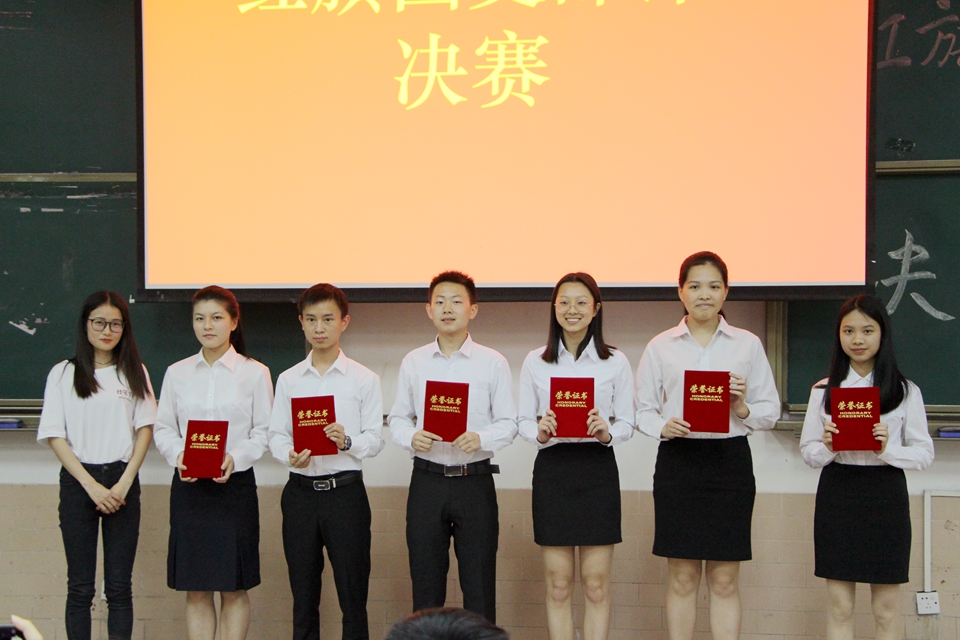 评选决赛开始后,主持人为大家简单介绍了本次评选的规则和流程。随后,参与本次评选的九个班级代表依次上台演讲,为现场的同学展示自身所在的团支部,分别从志愿服务、团日活动、主题班会、班级党、团发展情况以及部分成员获奖信息方面展开。台下评委根据所展示的内容给出分数。最后,由记分员算出现场比分,依次评选出六个红旗团支部,分别是:16工商管理2班、16会计学1班、17人力资源管理1班、16会计学3班、15工商管理3班和17会计学4班。