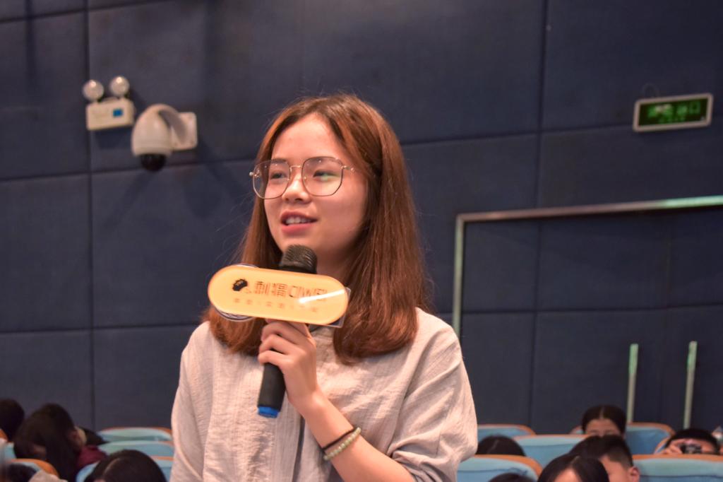 提问环节,胡依慢女士与陈晓杰先生回答了同学们关于“在考证、实习与课业中如何选择”与“金融专业考研是否有必要”等问题。面对规划问题,他们介绍了金融行业工作考证的情况,表明在校学生首先应当做好自身角色将重心放于学习。对于考研,他们认为考研应当以个人决心是否坚定为前提,并非所有学生的必选项。