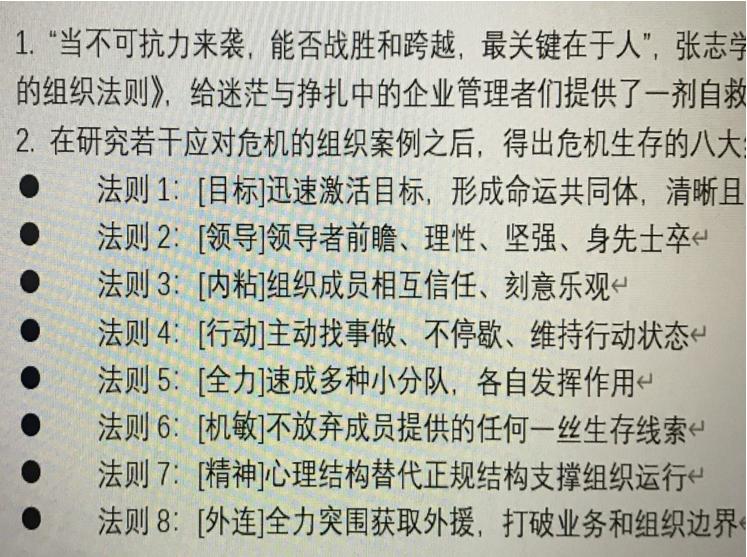 第四课,张志学教授的课程围绕危机生存的组织法则为主题,首先提出了他本人对于这次疫情突然来袭所产生的社会影响的建言。他从电影《天劫余生》切入主题,分析电影内容并结合当前社会情况总结启示,同时也点出中国近代企业家代表卢作孚和中国现代企业家代表任正非的事迹和他们为中国社会经济发展所做出的贡献,总结危机生存当中的基本组织法则。