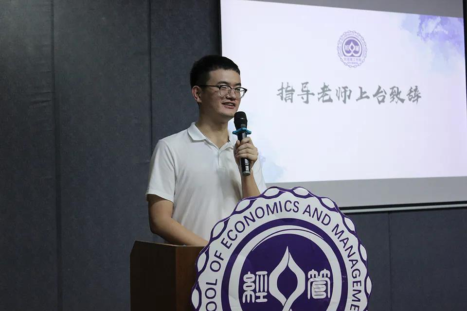 会议下一项,由黄惠丹作为干事代表进行发言,述说了自己作为经管团学的一员,自开学以来的所感所想,并且激励同届干事伙伴们一起努力。随后,各部门部长上台为干事颁发工作证。大会最后,由经管学院团委学生会指导老师刘文渊上台进行总结发言,指导老师刘文渊勉励干事干部们能够在工作中不断收获与成长并希望5.0的成员们能够不忘初心,履行好自己的责任,用自己的行动为同学们服务。