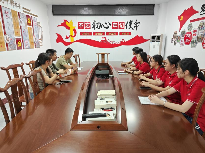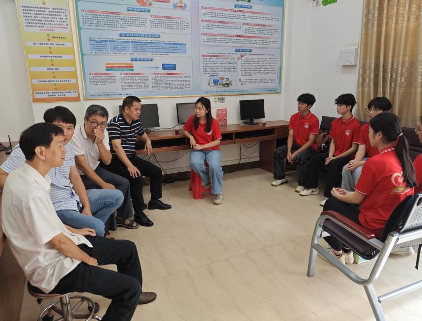 7月10日,突击队在梁雅俐老师的带领下,前往茂南区教育局,与当地学生资助中心负责人开展专题座谈会。会上,茂南区教育局领导介绍了当地资助工作的开展情况,并对突击队前期在石曹村的宣传活动表示肯定。梁雅俐老师汇报了团队的工作成果,并与队员们一起就“如何精准帮扶困难学生”“优化贷款办理流程”等问题展开讨论。教育局领导现场答疑,并承诺将为高校团队提供更多支持,助力政策宣传更高效、更精准。