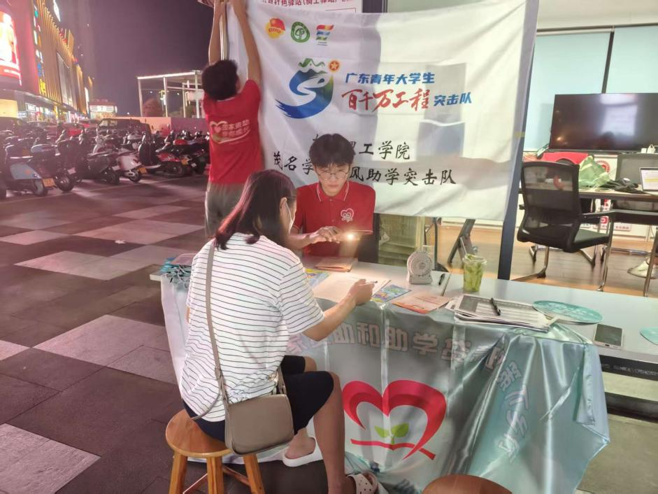 同一天,突击队走进茂名市东荟城社区,通过摆摊宣传的形式,向居民普及国家资助与助学贷款政策。队员们身着统一队服,热情地向过往居民发放宣传手册,并用通俗易懂的语言讲解助学贷款的申请条件、助学金的发放标准等内容。面对居民的疑问,队员们耐心解答,并邀请大家填写调查问卷,倾听他们的实际需求和建议。活动现场气氛热烈,许多居民表示,通过这次宣传,他们对国家资助政策有了更清晰的了解。