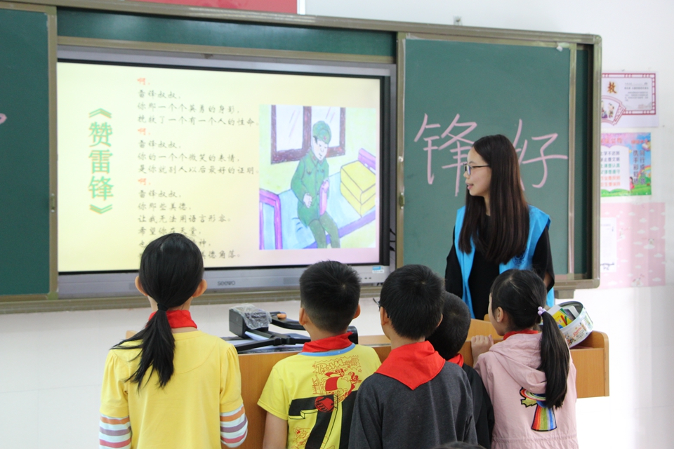 3月15日,为宣扬“学雷锋”的精神,yl88858永利集团经济与管理学院团总支、学生会志愿服务站带领志愿者们来到莞城中心小学,以“学习雷锋好榜样”为主题,向小学生们宣传雷锋精神。