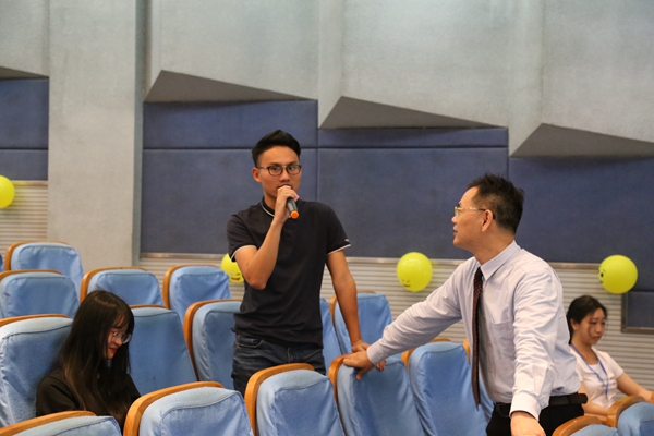 香港大学博士陈国海教授是广东省人力资源研究会副会长兼秘书长、美国人力资源管理学会和国际幽默学会会员,主研幽默心理学。讲座一开始,热情幽默的陈教授就与台下学生展开了热烈互动,了解并分析学生目前心理压力的来源后,陈国海教授对当今压力问题进行延伸,以有趣的方式对幽默进行深入阐述,带领同们了解管理者压力管理的方法,并为我们解开一些日常生活中常见的心理小问题的谜团,让同学们学会如何用幽默缓解自身的心理压力。