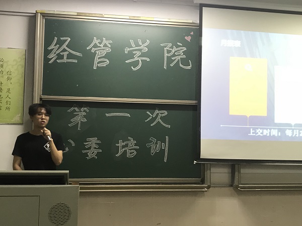 会上,心理辅导站部长刘杰同学向大家介绍了心理辅导站的作用以及心理委员的职责,细化到了心理委员该做什么、怎么做,并详细介绍了心理咨询室的预约流程,教各班心理委员们如何更好地服务同学。