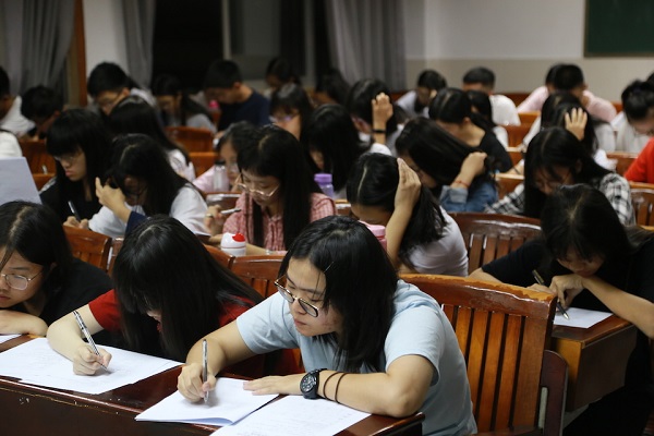 竞赛开始前,同学们有序入座,现场工作人员对参赛同学讲解参赛规则与纪律。19时30分,以笔试作为比赛形式的初赛正式开始,同学们都坐在自己的座位上专心答题。21时10分,同学们陆续完成试题,现场纪律良好。大部分同学带着微笑与自信结束考试,并对自己的考试结果充满期待。最后,心理辅导站的工作人员集中,认真对试题进行评卷打分。