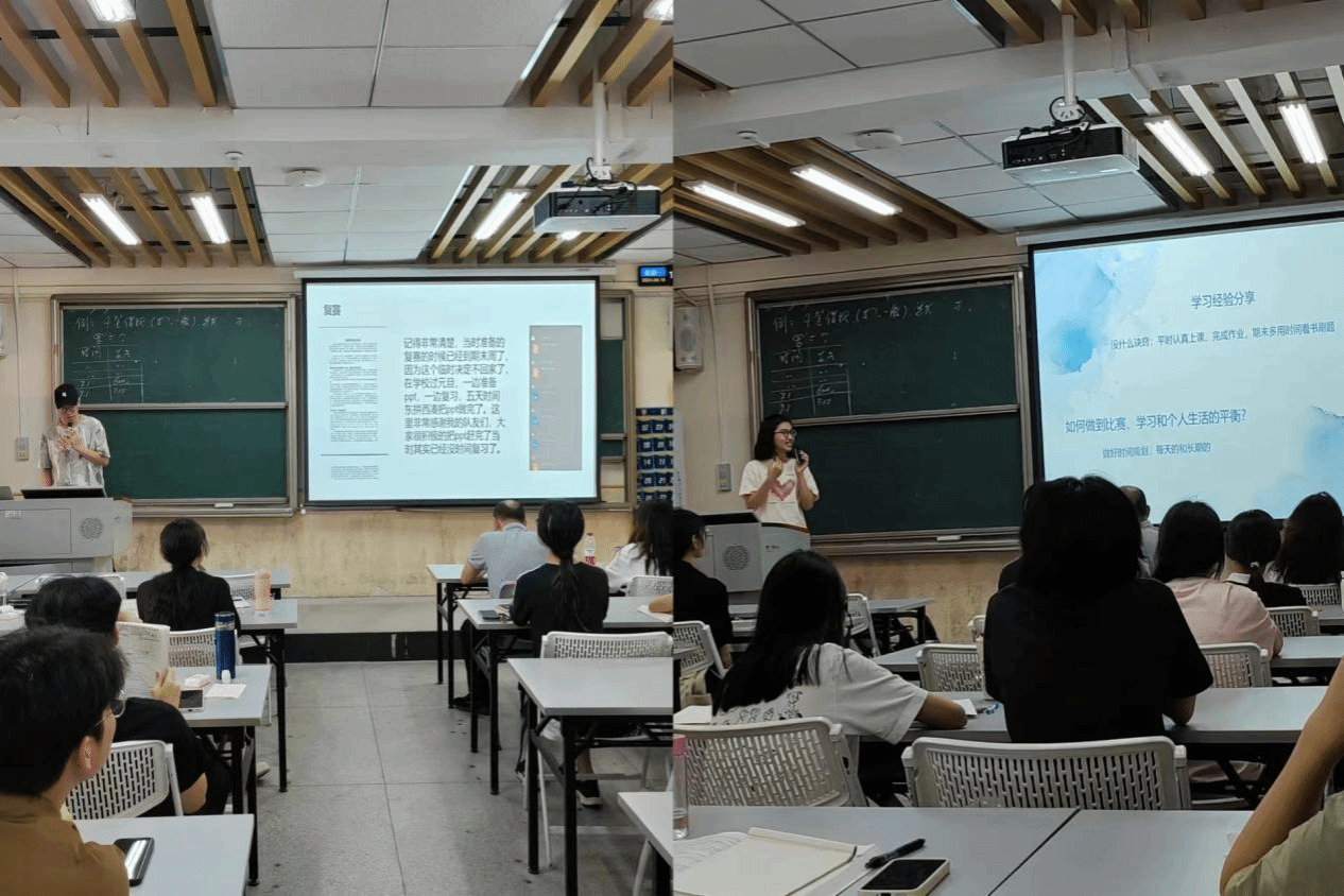 此外,班级还开展了“以赛促学强本领,提能争优展风采”主题分享会,练彩华、方溥稚同学作为分享人讲述了自己的比赛、学习的经历。方溥稚同学就上月在广州参加的“寻找未来基金经理”高校投资模拟联赛团体赛的经历,与同学们分享比赛历程,诉说自己的感想。她在分享中提到,面对挑战,应当给予自己充分的信心,坚定的迈出脚步。练彩华作为班级学术模范,侧重与班级同学分享学习上的方法,告诉大家学习没有捷径可走,坚持不懈定能收获成功。朋辈交流,共享心得,同学们在本次的分享交流中收获多多。