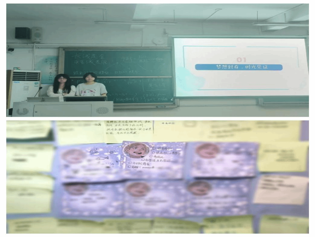 在“梦想封存,时光见证”环节,班委团带领同学们创新性地发起“未来之约”,号召每位同学写下个人愿景与未来规划并封存,以待毕业时共启这份与未来的约定。这一仪式不仅锚定了当下方向,更让未来愿景成为激励前行的宝贵动力。