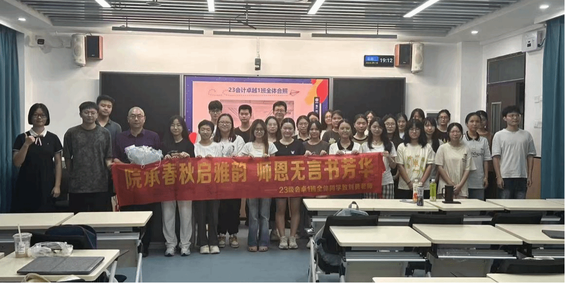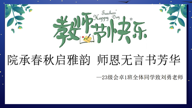 此外,值此教师节之际,班会巧妙地将节日庆祝融入其中。班级同学为刘勇老师献上了签名横幅和鲜花,并进行集体合影留念。表达出同学们对老师的尊敬与感激之情,增强了班级凝聚力,营造温馨和谐的氛围。
