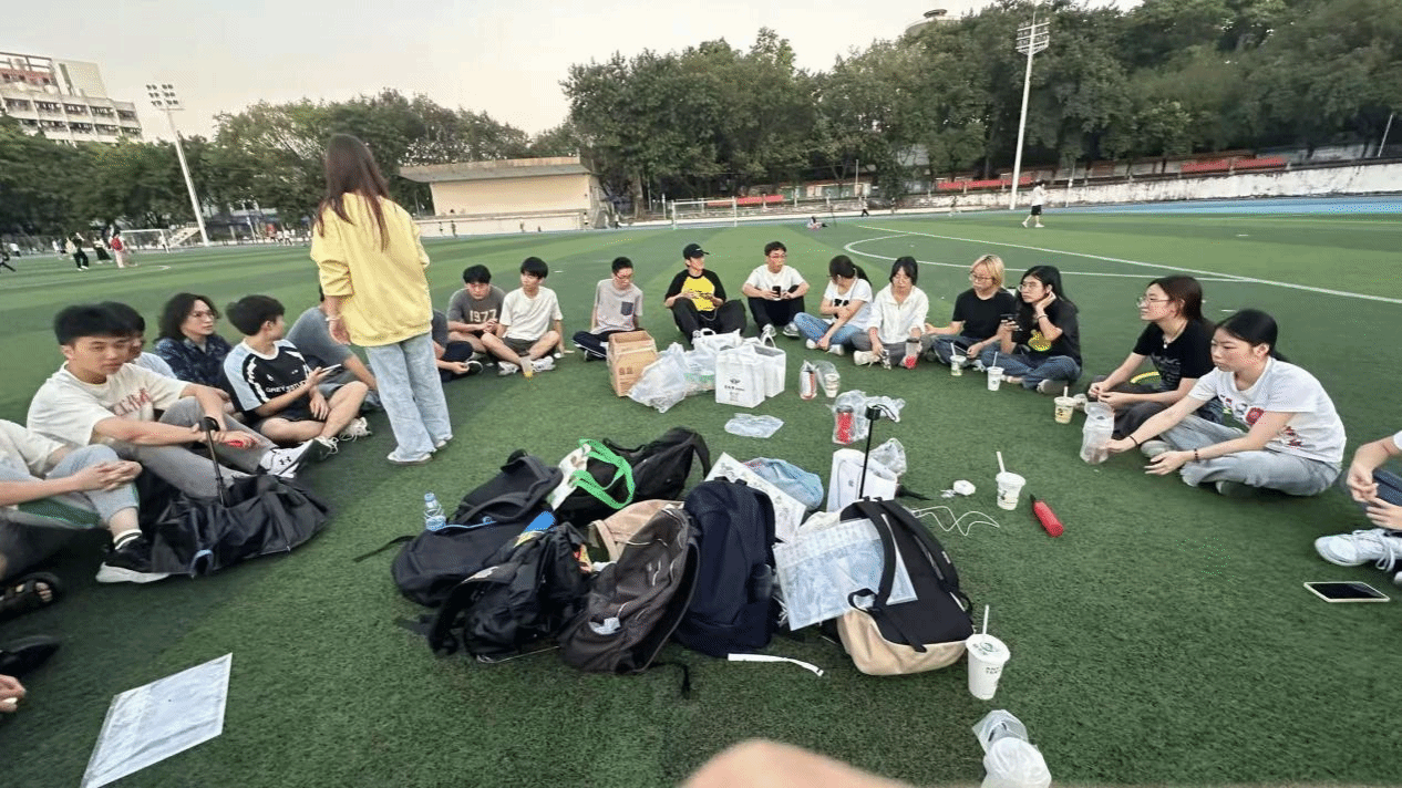 班会的高潮部分是在操场上进行的趣味运动环节。宣传委员黎雪滢将班级同学分为四组,组织了两人三足、穿越呼啦圈、踩气球、迎面接力等趣味游戏。这些活动不仅提高了同学们的身体协调性和反应能力,还培养了团队合作精神和集体荣誉感,增强了同学们之间的互动和友谊。通过这些富有挑战和趣味性的游戏,同学们在运动中收获了快乐,也促进了彼此的沟通与合作。