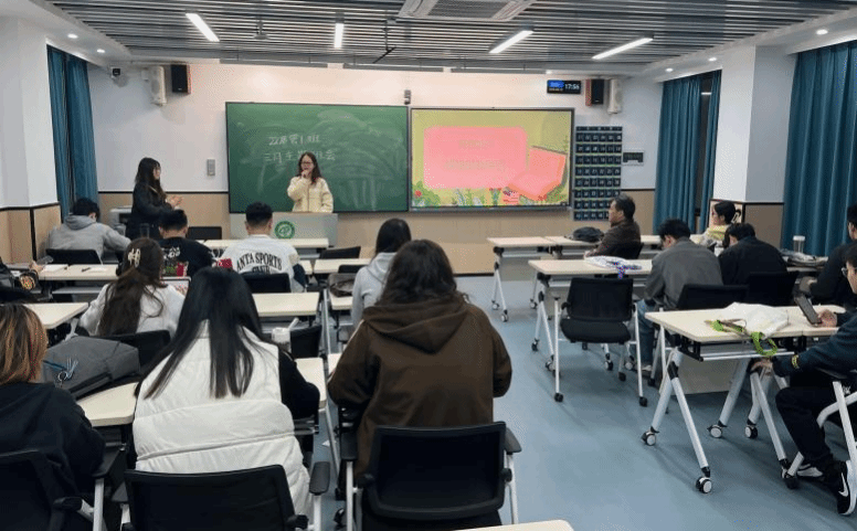 随后,班会进入“树优良学风,创勤学氛围”环节。班长依据开学后的课堂观察,点明班级学风的不足,鼓励同学们养成独立思考、自主学习的好习惯。为了加深同学们对学业要求的了解,班长特别设置 “毕业资格审查” 环节,仔细讲解毕业所需学分和学校相关规定,让大家对学业目标更加明晰。