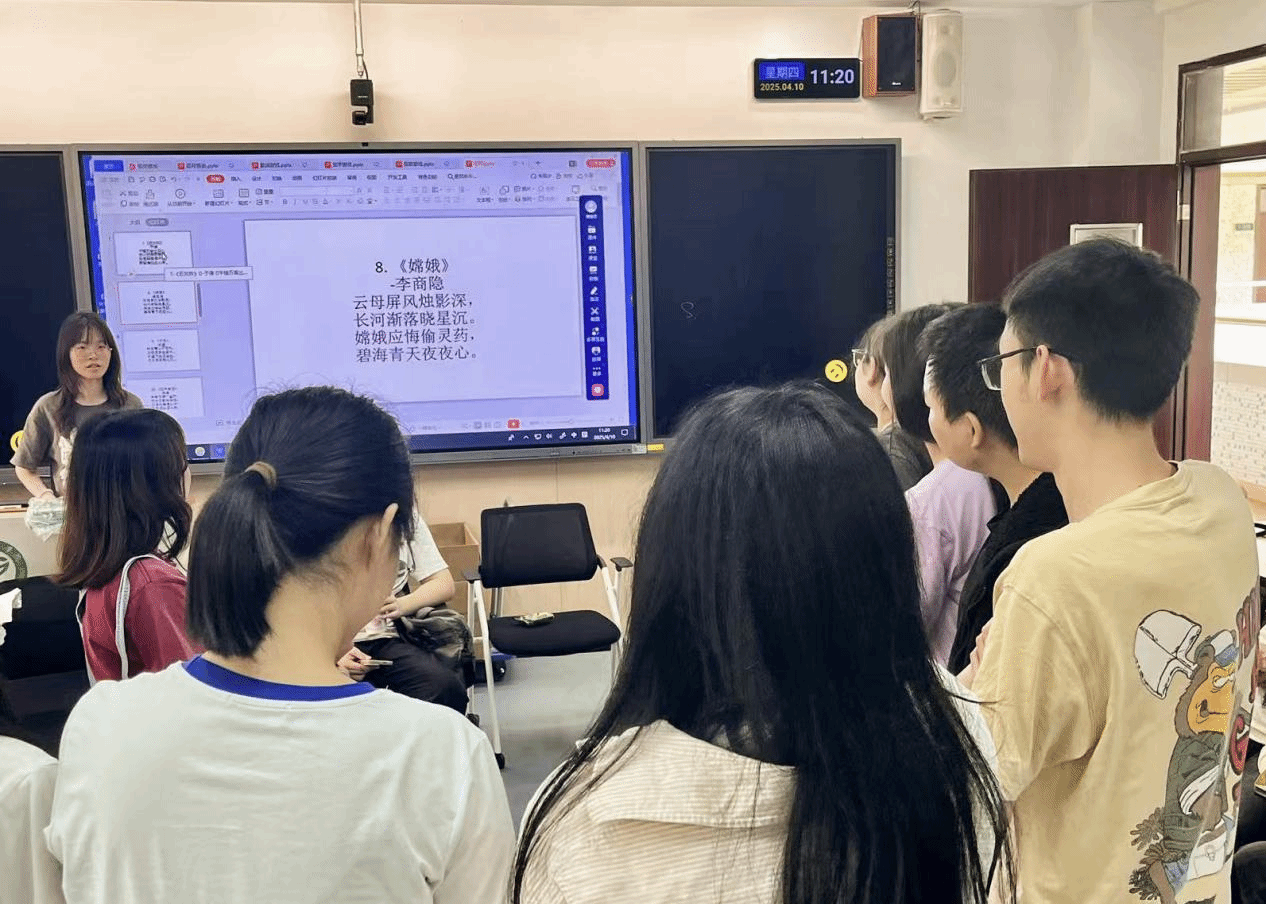 此外,本次班会以经典诗词为桥梁,创新融入诗词朗诵活动,将班级文化建设与优秀文化传承有机结合。通过“以诗悟道、以声传情”的方式,同学们在朗诵中深入探寻文化内核,砥砺自信之姿,于诗意的共鸣中凝聚集体向心力。