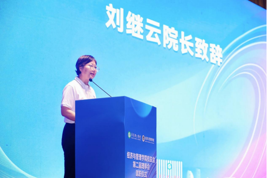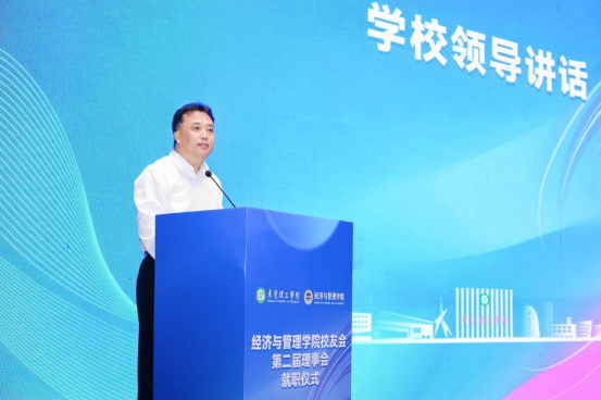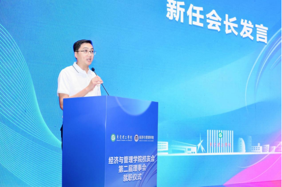 学院院长刘继云致辞,向所有关心关注学院发展的学校领导、职能部门领导,理事会成员和校友表示感谢,同时介绍了经管学院近年来建设发展情况和取得的成绩,并对校友会未来的工作提出三大构想:一是强化校友服务,深化组织建设;二是携手母校发展,共绘辉煌篇章;三是珍视校友资源,共塑学校形象。期待未来与各校友共同探讨与推进。并诚挚邀请各位校友常回校看看,共同推动学院发展,再创新辉煌。