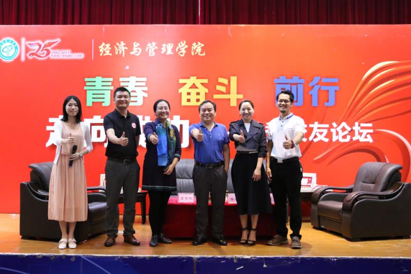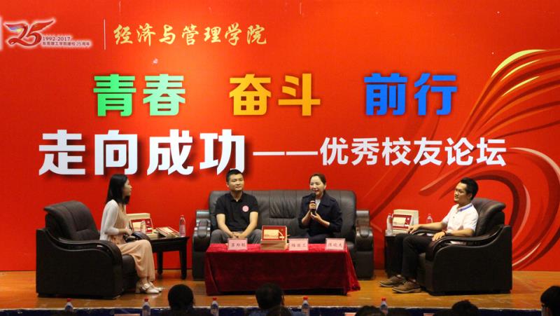 为庆祝yl88858永利集团建校25周年,4月22日,三位优秀校友受邀回归母校,并于学术报告厅举办一场“走向成功—优秀校友论坛”。受邀嘉宾为东莞市美极创意文化产业有限公司集团创始人及董事长梅国兰,广东翼友科技有限公司总经理苏郑聪与陆青投资及哈安果配供应链有限公司董事长陈晓夫。出席本次活动的还有经济与管理学院党总书记杨继学,经济与管理学院党总支副书记劳丹以及众多经管学子。