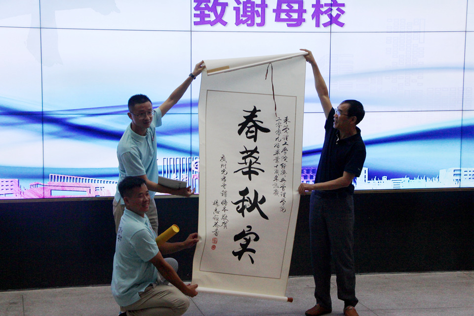 2009届工商管理专业向学院赠送了“春华秋实”墨宝,祝愿学院发展越来越好,桃李满天下;同时,2009届校友还向学院“爱心基金”捐赠26100元,用于资助学院贫困学生和支持学院发展。