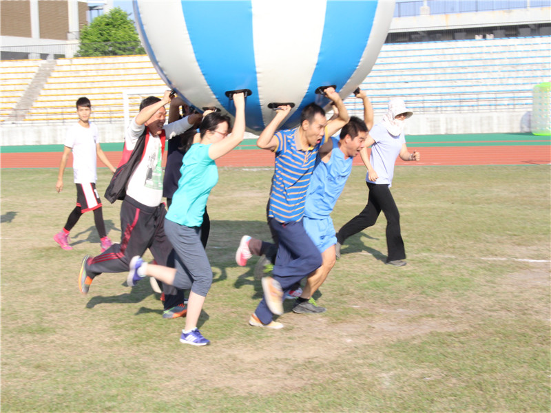在步步高升项目中,教工们齐脚并跳,灵活有余,其中管理系教师身姿矫捷,队友之间合作紧密,衔接有致,跳出次数远远高于其他队伍。在扛大球项目中,教工们双手举起大球抢步并冲,成绩差距微小。在随后的智力项目拖拉机比赛中,队友之间沉着应战,合作无间,一直鏖战到晚上。