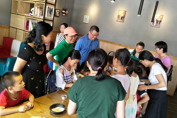 早上10点多,亲子团陆续来到现场,在餐厅工作人员和父母的指导下,孩子们新手制作披萨、蛋挞、蛋糕等多种点心。从揉粉到定型,再到图案,都是小孩子亲自精心设计和制造。用餐时,孩子们享受着亲自制作的点心,倍感美味。同时,约吧西餐厅也为大人和孩子提供了丰富的自助餐。
