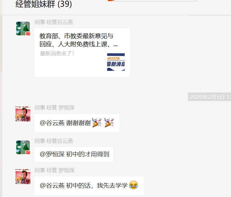 来势汹汹的疫情使师生们无法正常返校进行工作和学习,但经管女教工们仍以云庆祝的方式欢迎妇女节的来临今年的妇女节。疫情期间,经管女教工们以微信等线上方式分享工作与生活点滴,在厨艺、育儿、备课、学习、健身等各个方面进行交流与分享。如何设计教学方案、如何利用网络资源、如何做出道道佳肴等都成了经管女教工们的日常话题。