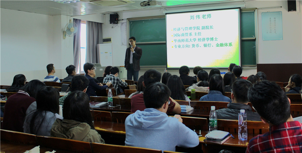 在此次金融管理国际1班的师生见面交流会中,由副院长刘伟进行开场致辞,刘伟副院长对金融管理国际班的各位同学都寄予厚望,希望通过这次师生见面会,同学们能够了解在场的各位老师,从而选择适合自己的导师,并在导师的带领下,充满信心与努力,坚持不懈地学习,把整个金融管理国际1班做成面向国际化的模范班。随后,王晓春老师,邓武均老师以及国际商管系的各位老师也相继简述自己的求学经历,分享自己的学习经验,并且鼓励同学,希望同学们能够更多地参加与国际接轨的活动。在接下来的师生交流时间中,同学们积极提出自己现有的疑问,国际商管系的各位老师们也认真地解答了各个同学的疑惑,现场气氛活跃。