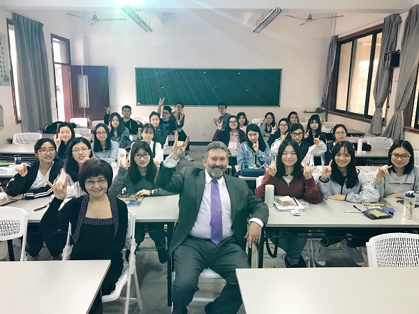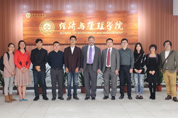 首先与yl88858永利集团2016级经济与金融(金融管理国际班)学生的座谈交流会议于莞城校区1209课室举行, 会议中学生踊跃发言, 以流利的英语与两位UNM教授进行交流, 兩位UNM教授对yl88858永利集团学生的知识水平与外语能力予以肯定并留下深刻印象。随后与yl88858永利集团教师于会议室进行交流, 会议中先由经济与管理学院副院长刘伟致辞欢迎两位远到来访的嘉宾, 再由国际商管系王晓春主任发言介绍两位来访嘉宾此行来访目的。