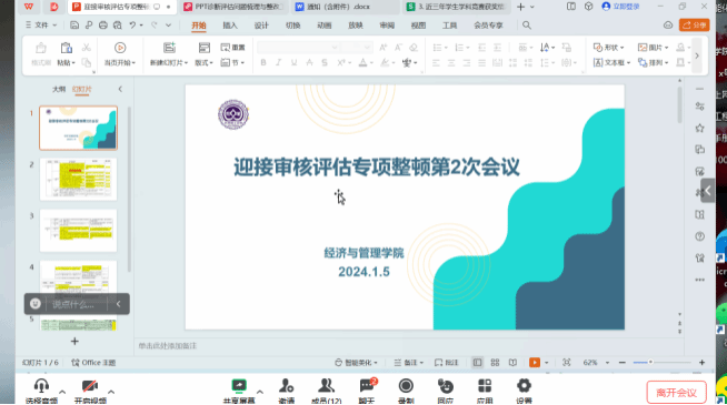 第二次审核评估专项整顿会议于1月5日14点30在腾讯会议线上展开,会议由黎伟副院长主持,各系主任出席会议。黎伟副院长就人才培养特色与措施的汇报、教学文件自查、办学数据自查与更新等方面进行了工作安排。