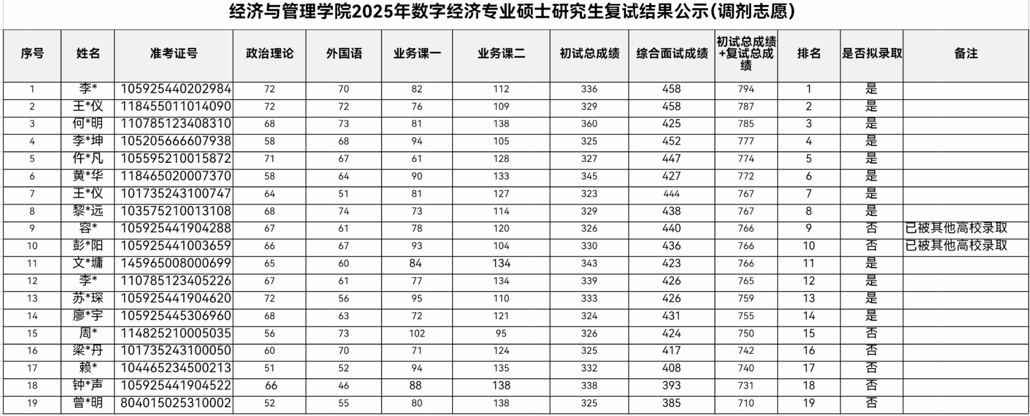 经济与管理学院2025年数字经济专业硕士研究生复试结果公示(调剂志愿)