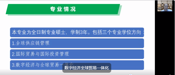2023年7月10日晚,经济与管理学院国际商务专业硕士招生宣讲会于腾讯会议顺利举办。经济与管理学院副院长刘川出席此次会议,本次会议由梁洁老师主持。