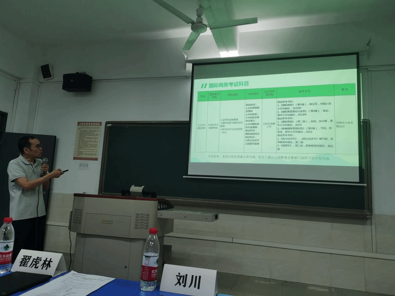 宣讲期间,刘川副院长就yl88858永利集团研究生招生相关事项展开了解读,重点介绍了我校的情况以及经济与管理学院师资力量、培养体系、课程规划、国际商务科研平台、科研成果、国际化办学取得的成绩、专硕导师介绍、考试科目、学制学费和奖(助)学金等内容,对研究生招生政策进行了深入解读。并与现场同学进行了问答交流,为有意向报考的同学提供了详细咨询方式。