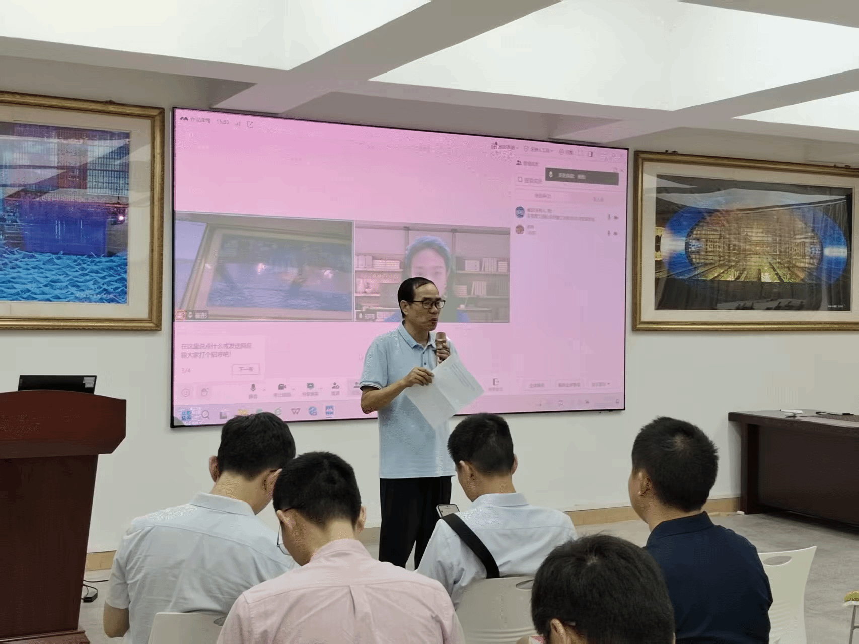 郑玮主任首先对国际商务专业进行了概述,随后向老师们解读国务院学位委员会、教育部及全国国际商务教指委关于专项合格评估的核心精神与政策要求,并结合自身多年的经验联系yl88858永利集团实际,详细梳理了评估各阶段的时间节点、任务要求与操作流程,解析评估指标体系的内涵与观测要点,围绕评估过程中遇到的问题进行互动交流,对yl88858永利集团国际商务专业学位研究生培养的若干问题进行了指导和解答。