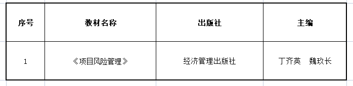 经济与管理学院教材建设工作小组审查,《项目风险管理》等1本教材编写人员符合学校教材编写人员条件,拟同意其开展相关教材编写工作,现予以公示,具体信息如下: